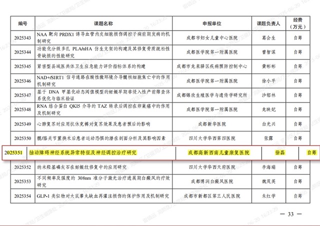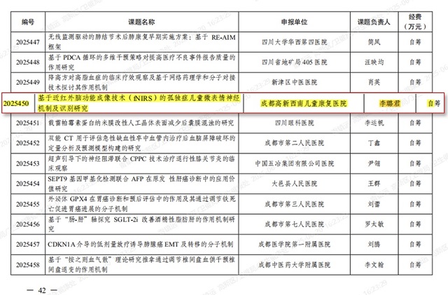 近日,成都市卫生健康委员会正式发布《关于下达2025年成都市医学科研课题立项项目的通知》(成卫健发〔2025〕32号)。西南儿童医院一城两院申报的4项聚焦特需儿童健康关键难题的科研课题,全部成功获批立项。这不仅是对医院科研实力的高度认可,更是医院践行“科研兴院”战略、以科技创新驱动服务升级的又一重要里程碑。