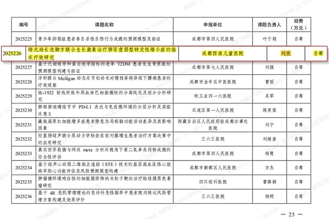 近日,成都市卫生健康委员会正式发布《关于下达2025年成都市医学科研课题立项项目的通知》(成卫健发〔2025〕32号)。西南儿童医院一城两院申报的4项聚焦...